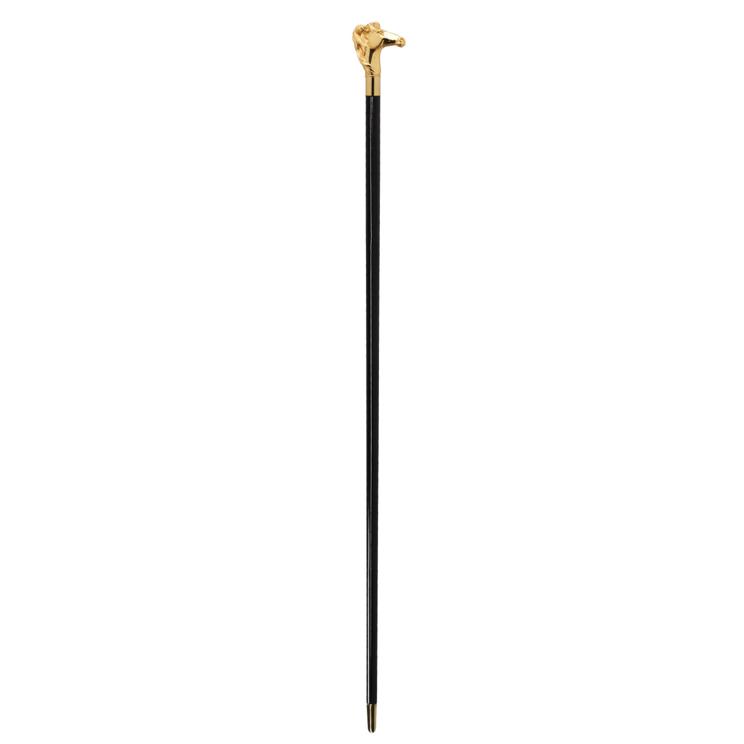 Materiali: Impugnatura in polvere di marmo e placcata oro 18k. Struttura in legno di faggio laccato nero lucido. Puntale dorato.