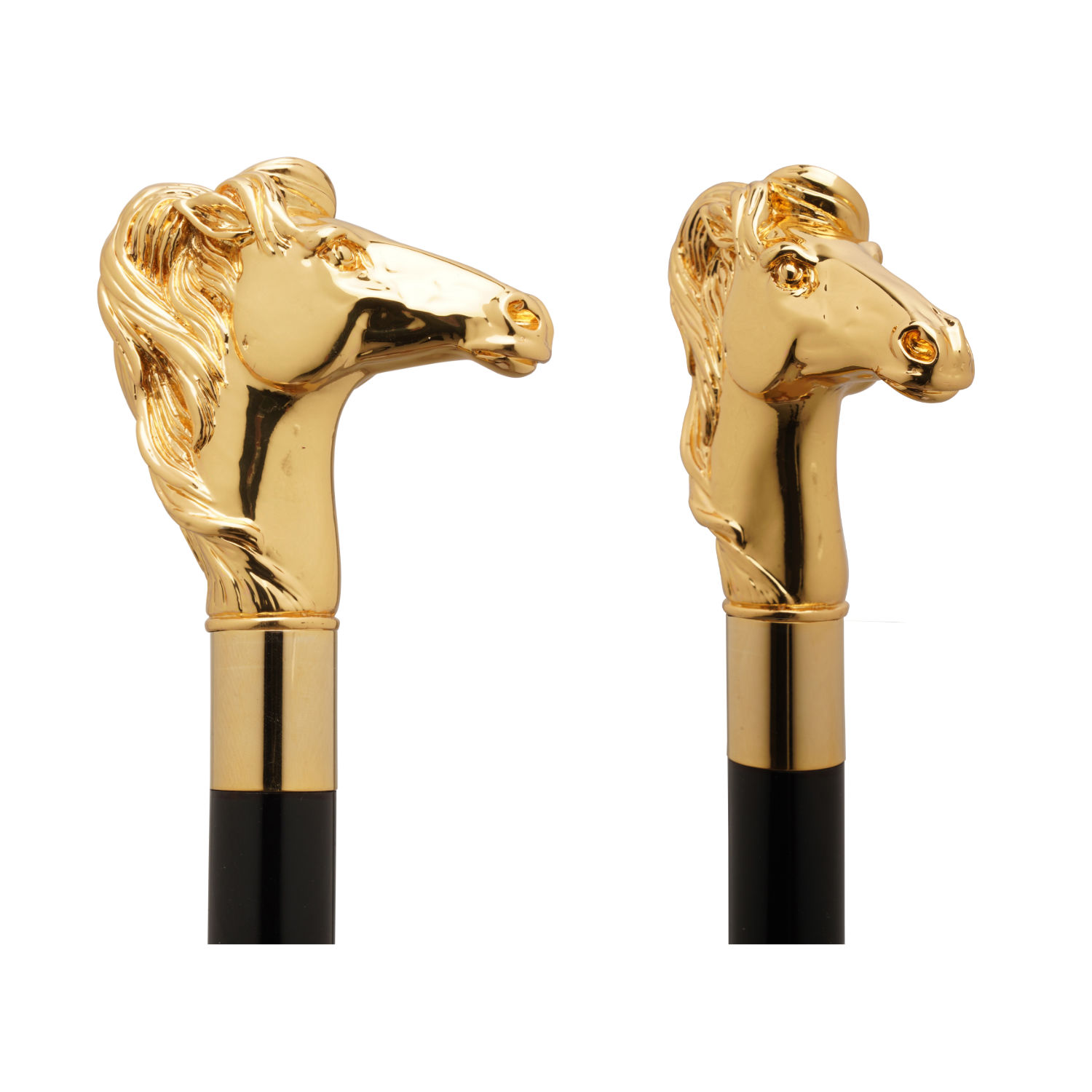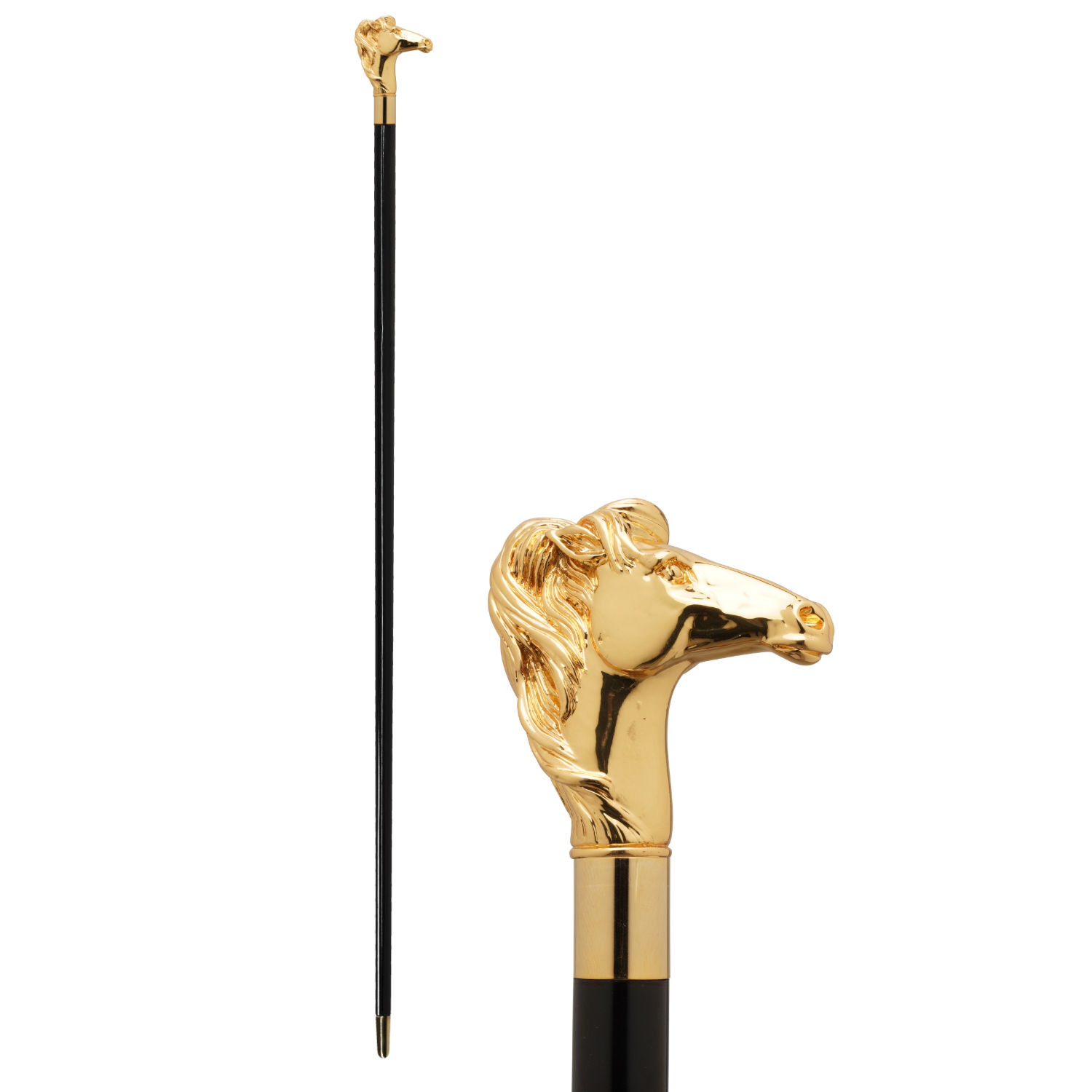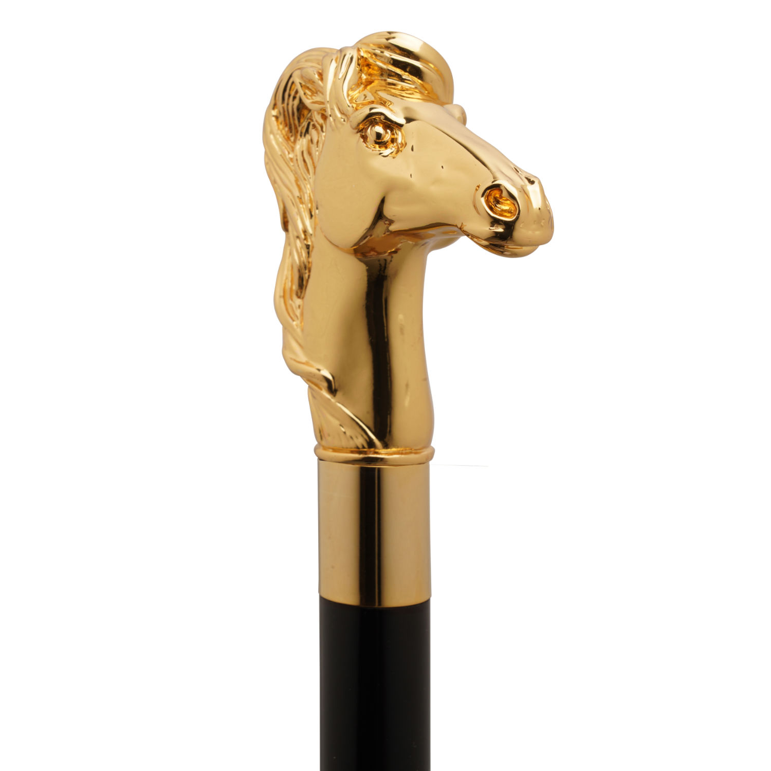 Raffinato bastone da passeggio elegante con originale impugnatura con cavallo selvaggio scolpito a mano e placcata oro 18k.
