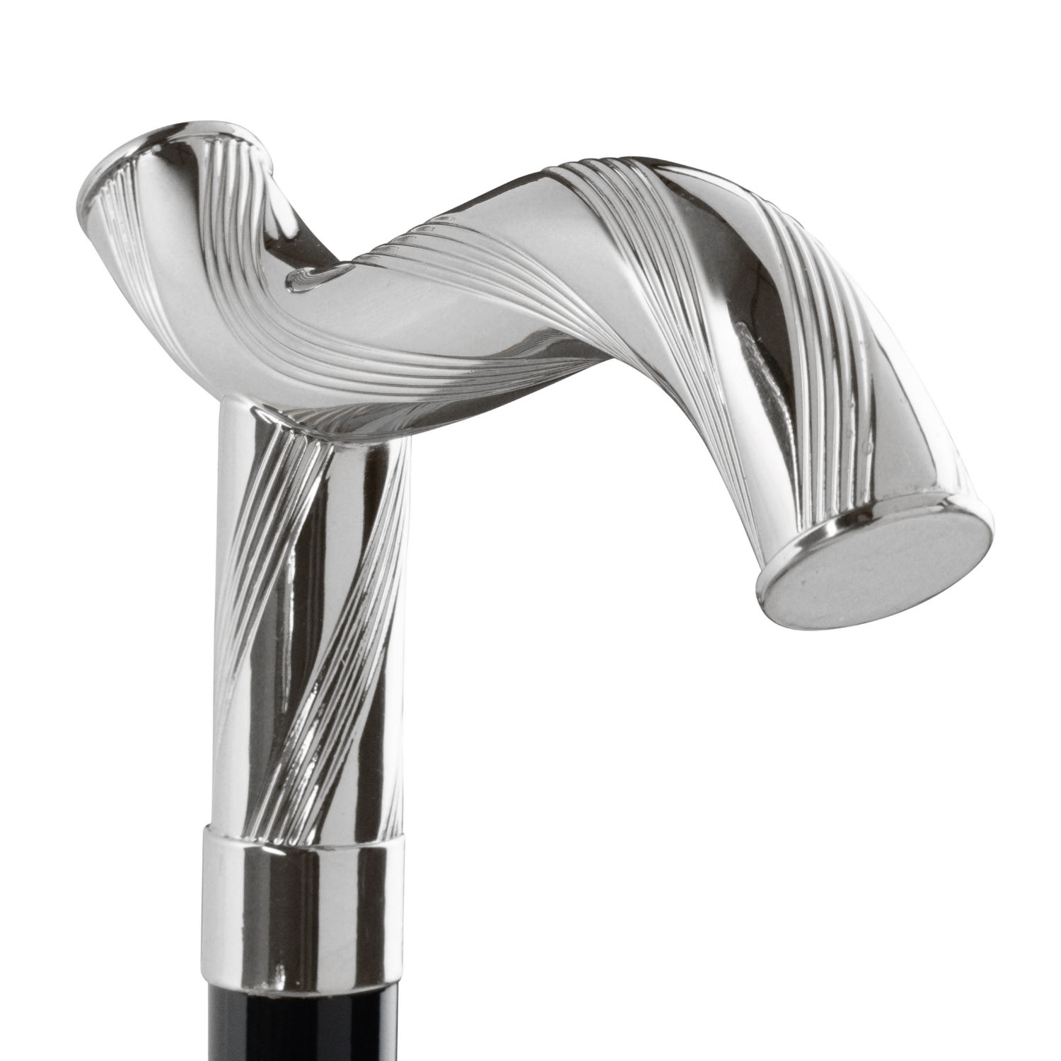 Tradizionale bastone da passeggio elegante e funzionale con impugnatura ondulata con decoro rigato placcata argento 925.