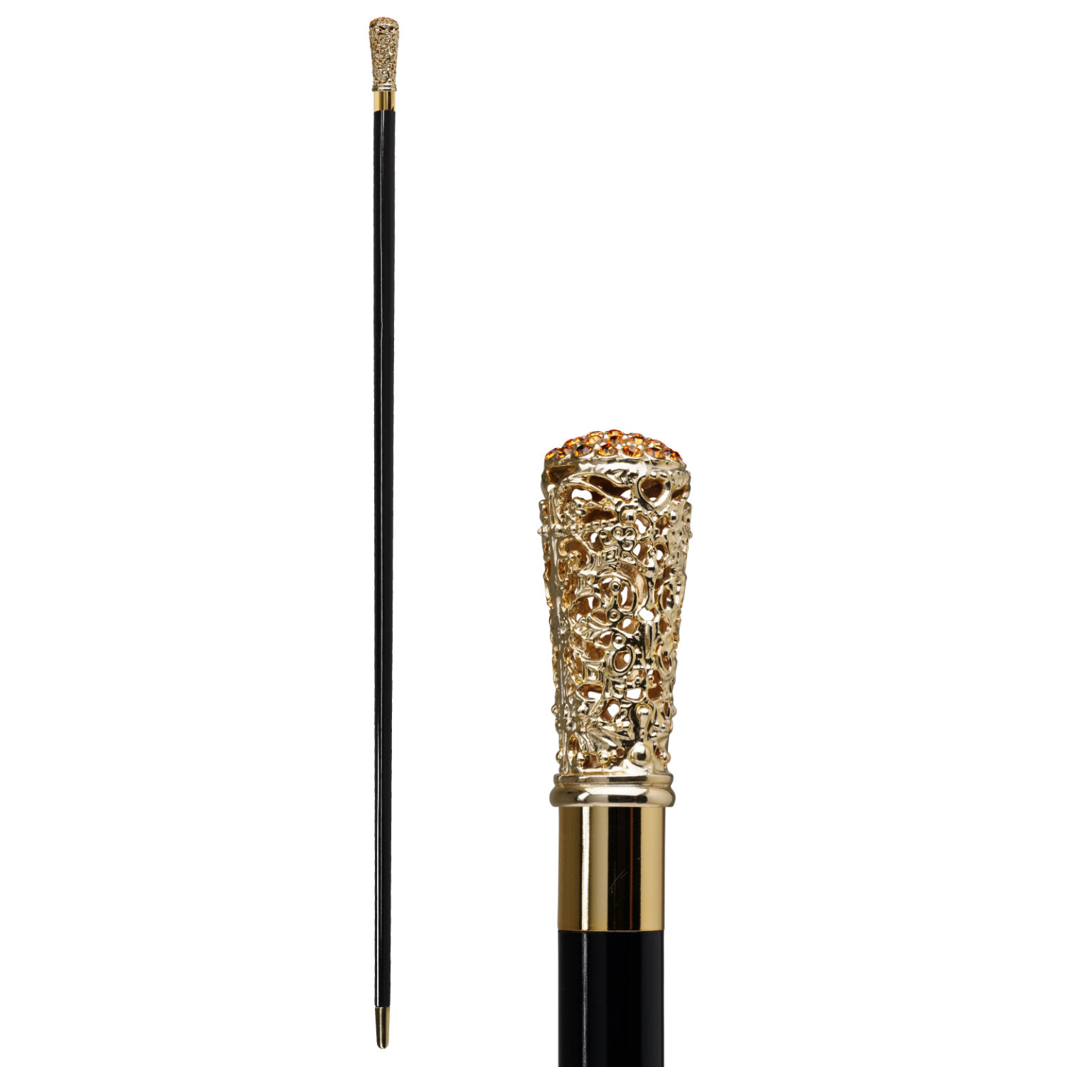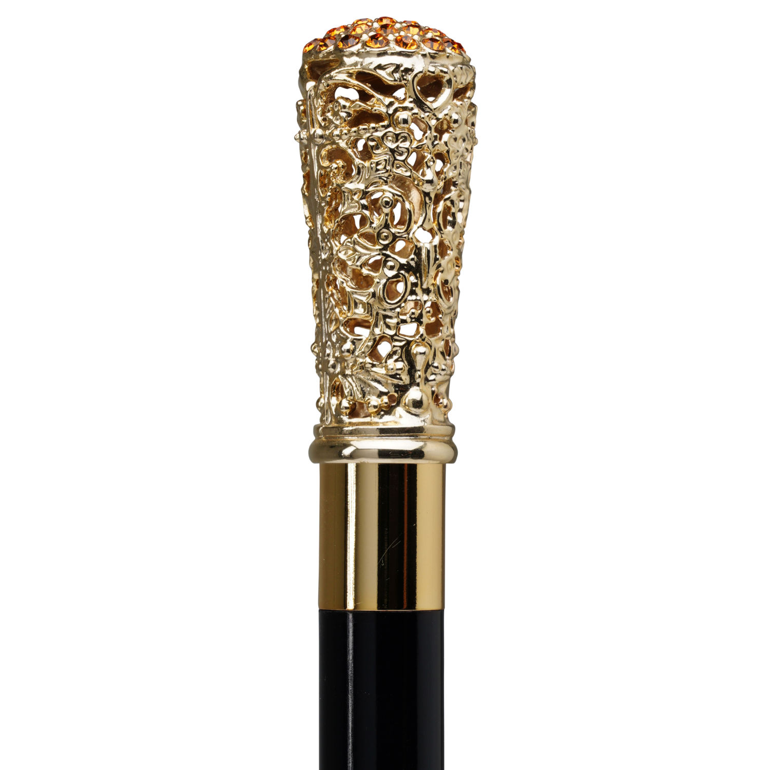Raffinato bastone da passeggio elegante, con tradizionale impugnatura "milord" placcata oro 24k decorata con motivi liberty e Swarovski.
