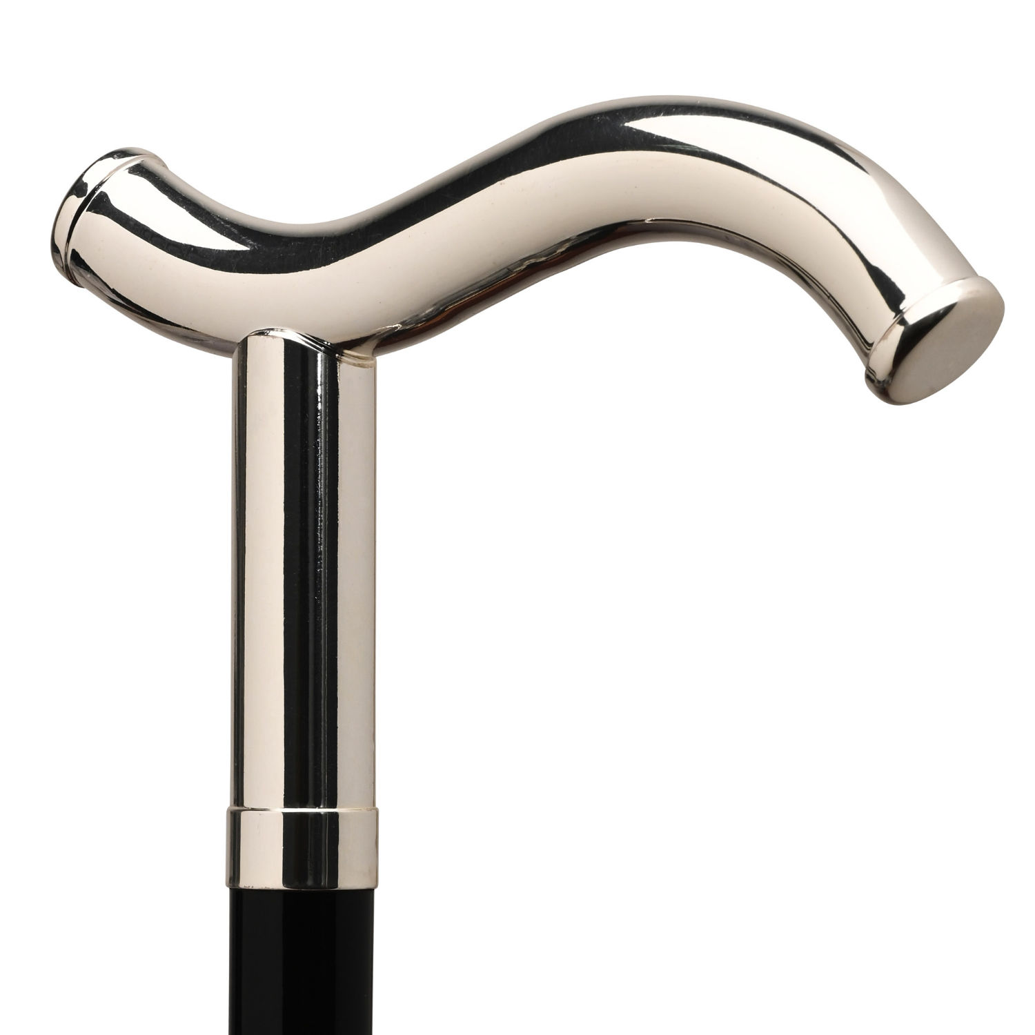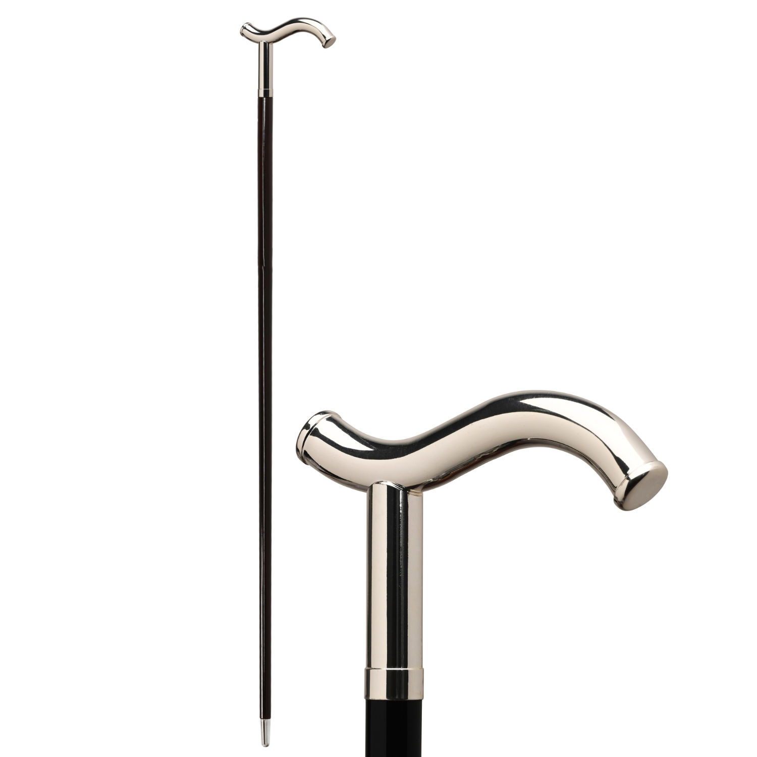 Tradizionale bastone da passeggio elegante e funzionale con impugnatura a stampella ondulata placcata argento 925.
