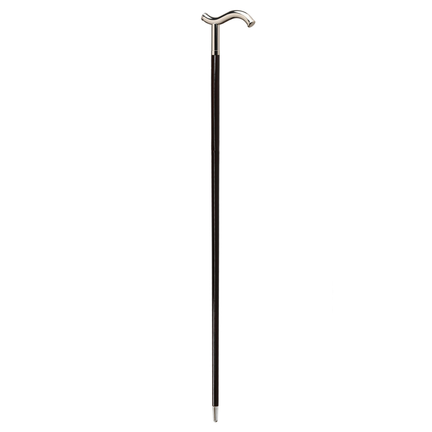 Bastone da passeggio elegante dalla struttura robusta realizzata in legno di faggio laccato nero lucido, con all'estremità il puntale argentato, per garantire il giusto sostegno e durata nel tempo.