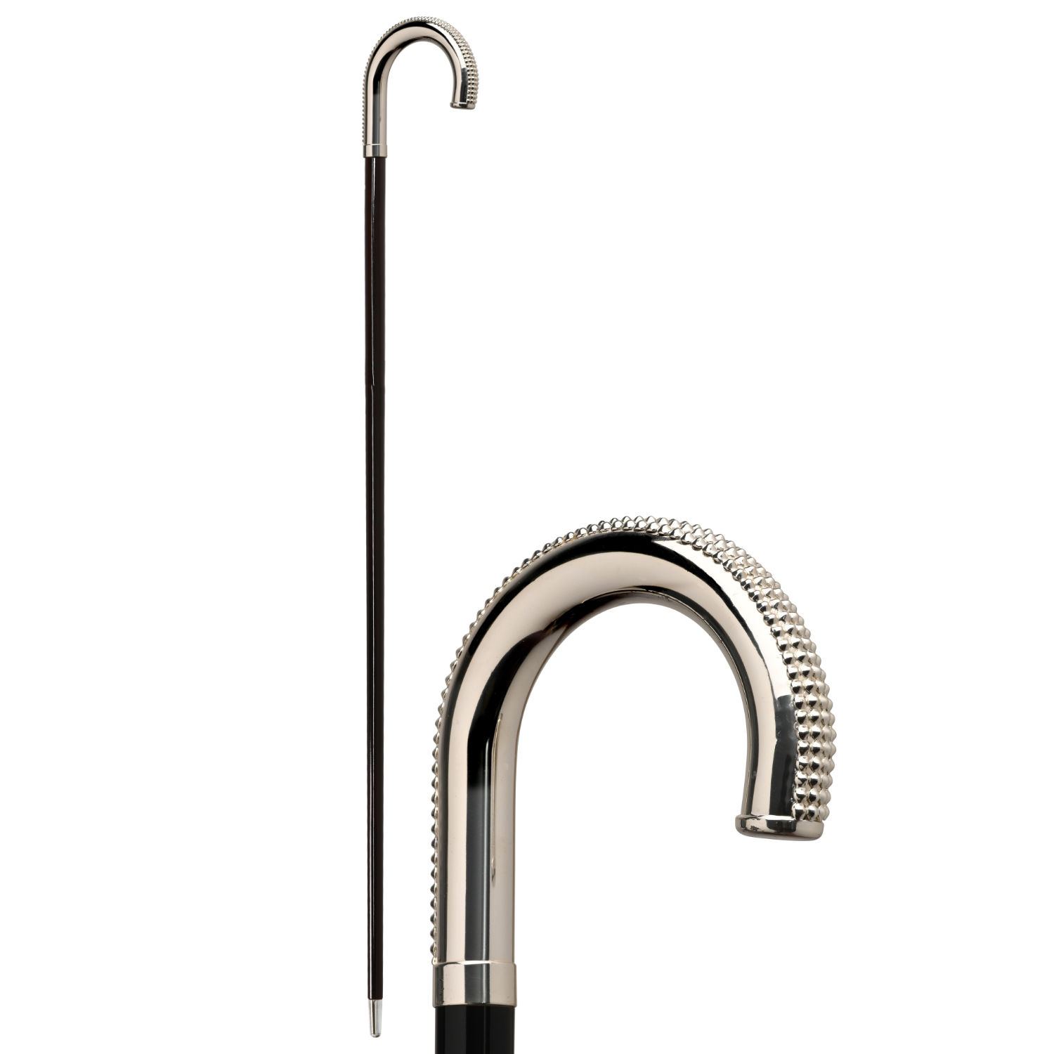 Tradizionale bastone da passeggio elegante e funzionale con "impugnatura Crook" personalizzata con borchie, placcata argento 925.