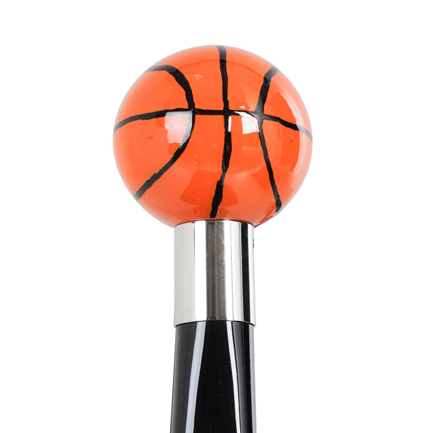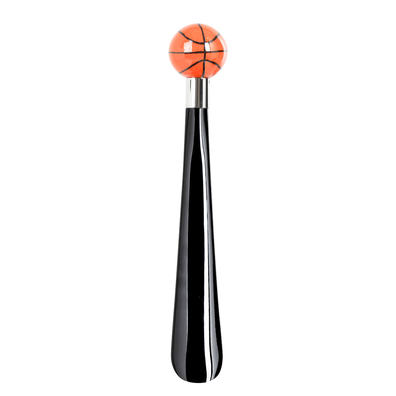 Originale calzascarpe corto dipinto a mano con palla da basket scolpita sull'impugnatura.