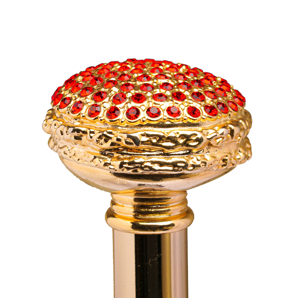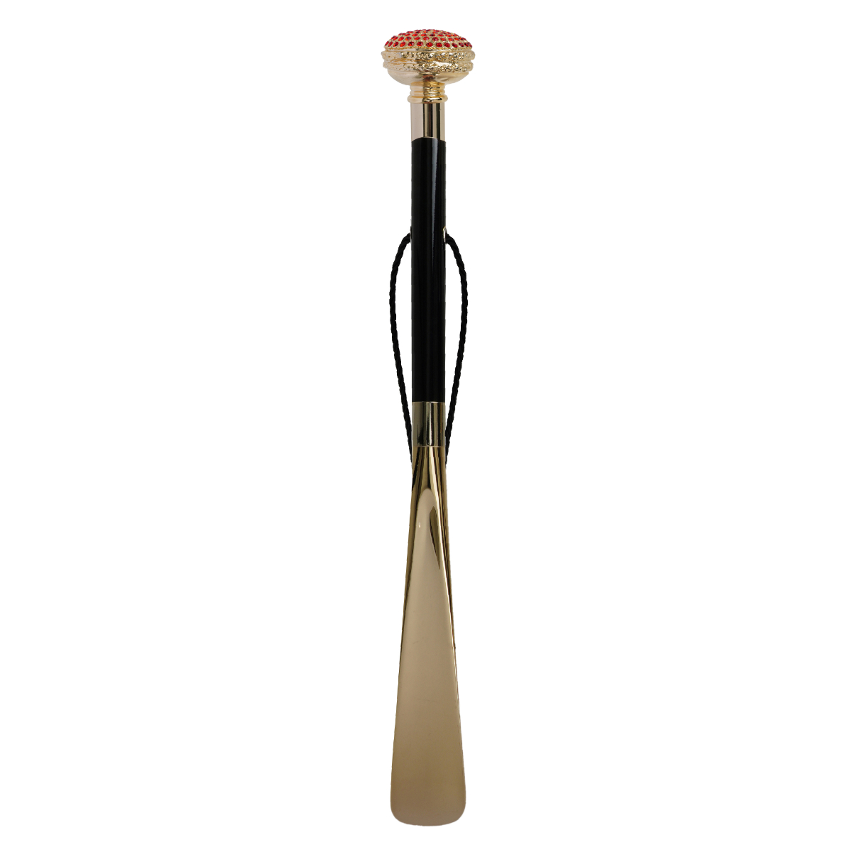 Elegante calzascarpe con pomello macaron placcato oro 24k ricoperto con Swarovski rossi.