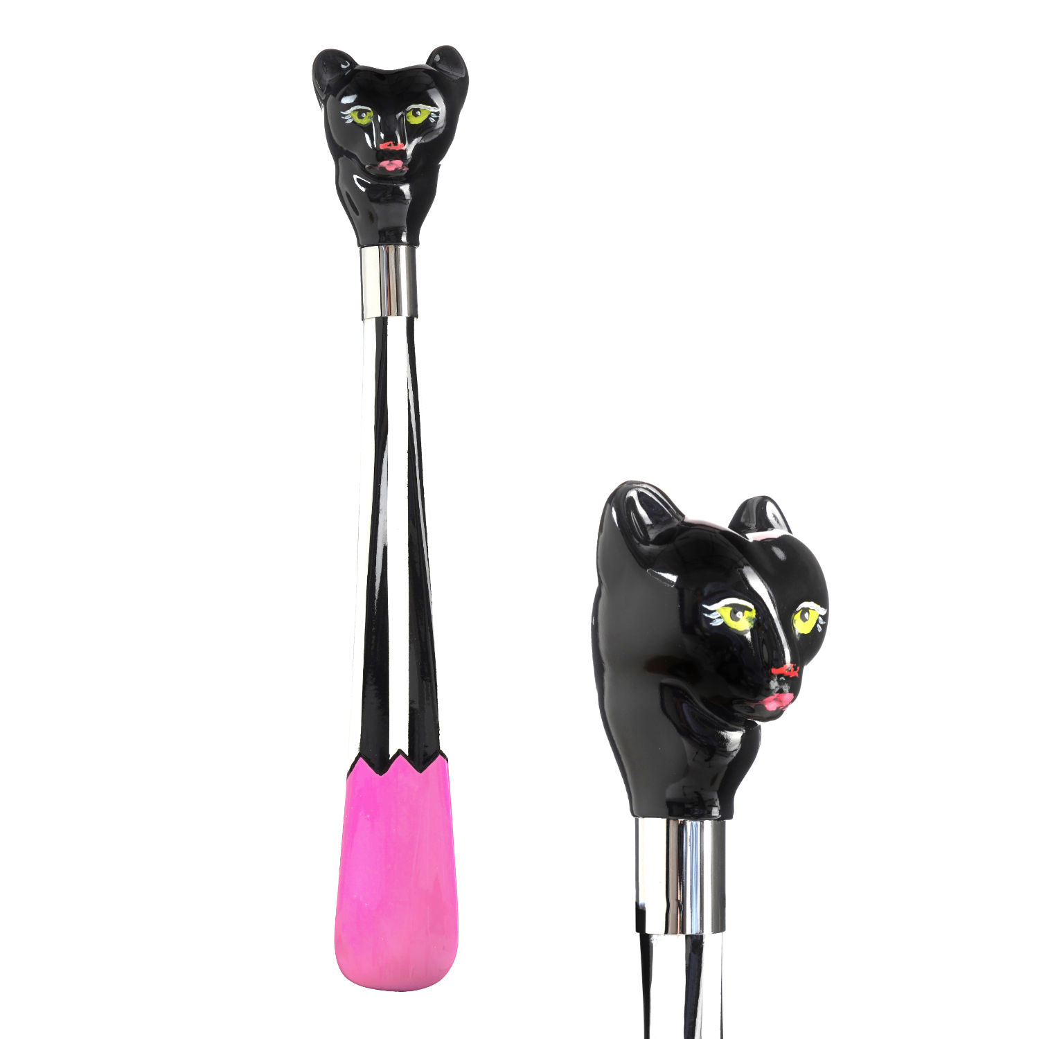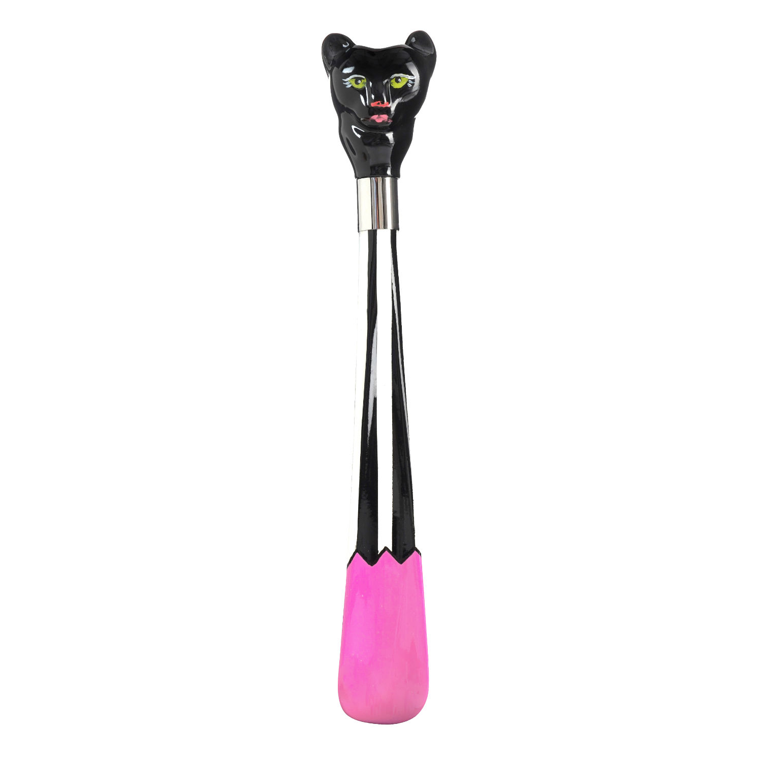 Originale calzascarpe corto dipinto a mano con pantera scolpita sull'impugnatura.