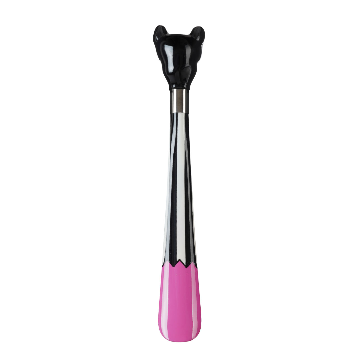 Calzascarpe corto con collare placcato argento 925 e paletta in ABS laccata nero lucido.