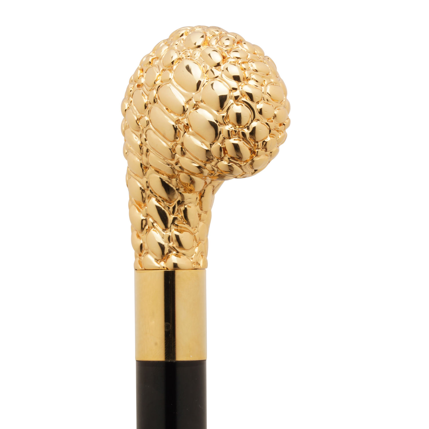 Materiali:Pomello in polvere di marmo placcato oro 24k, asta in faggio laccato nero, paletta in ABS dorata.