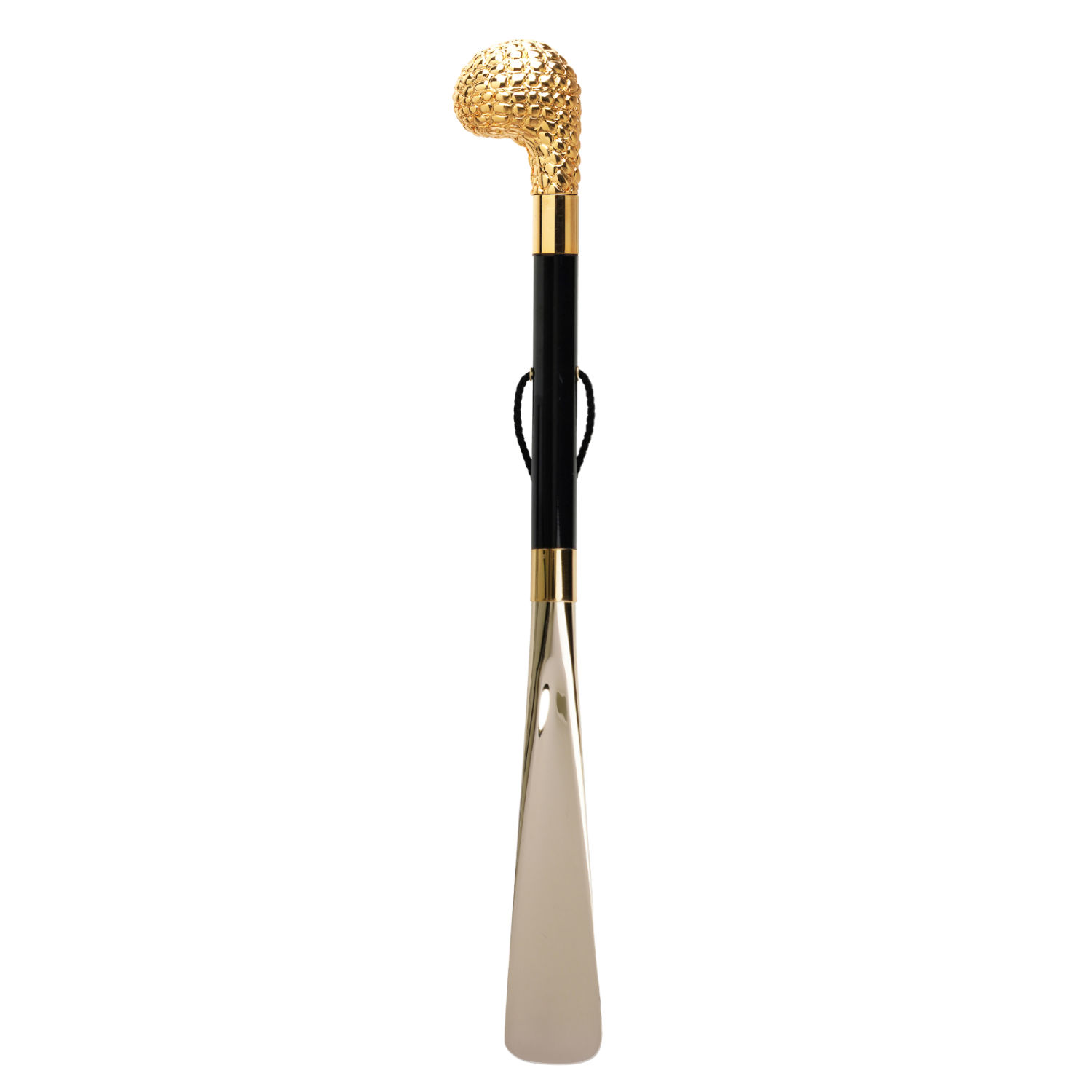 Calzascarpe asta lunga con paletta in ABS dorata.